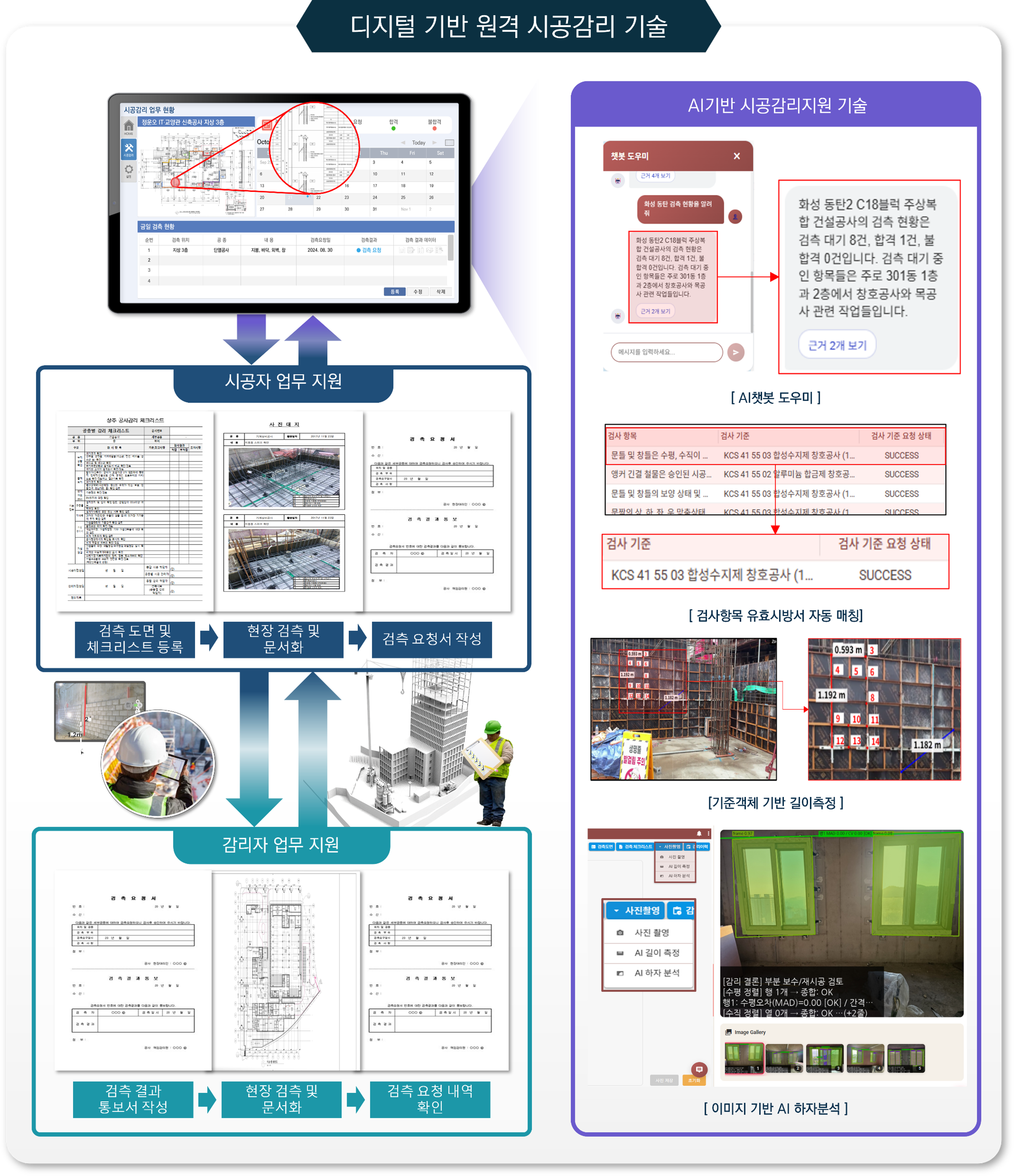 This project aims to enhance construction productivity and safety by transitioning from traditional, labor-intensive, and site-centric workflows to a digitalized and automated supervision framework. The research addresses the limitations of existing paper-based supervision by establishing a digital environment that resolves information discontinuity among project participants. Key technical developments include the digitization of documentation tasks, mobile-based technologies for on-site data acquisition, and the development of analytic algorithms to support supervision duties based on field data.